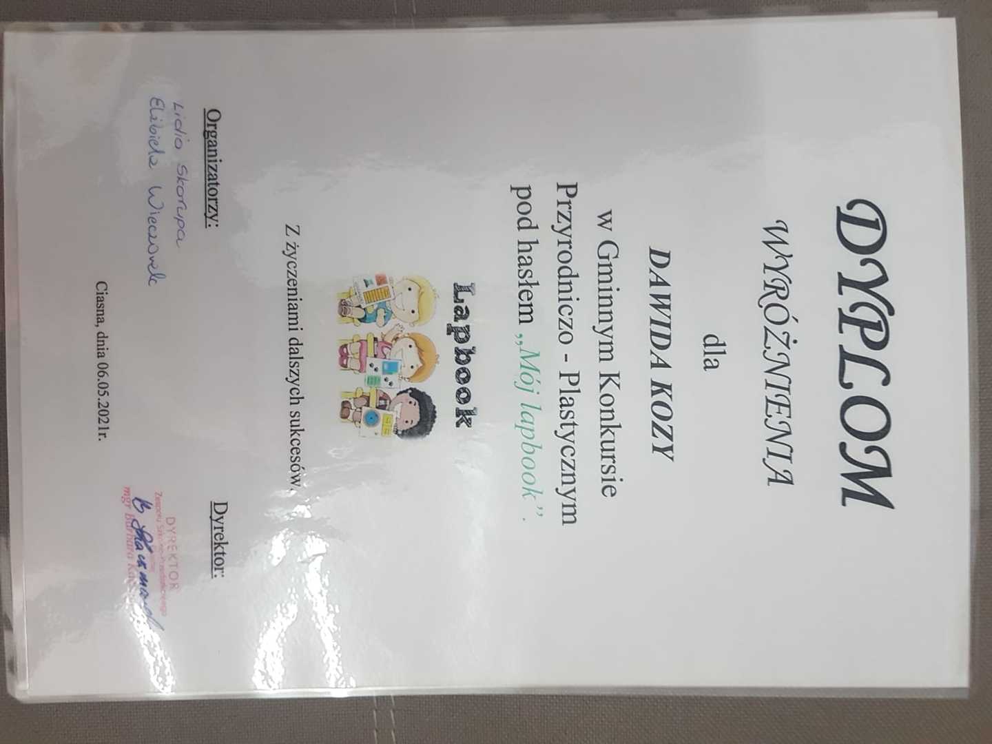Uczniowie klas I-III wzięli udział w konkursie organizowanym przez Zespół Szkolno- Przedszkolny w Ciasnej. Polegał on na stworzeniu lapbooka o tematyce związanej z regionem, w którym mieszkamy.
