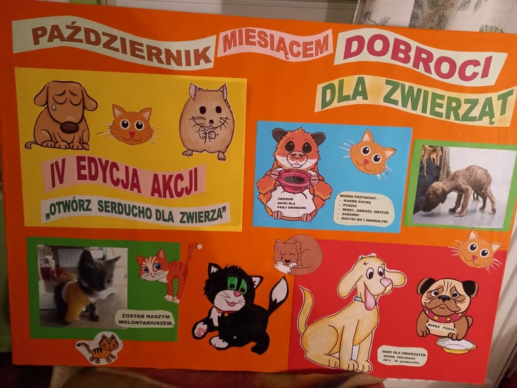 Nie zapominajmy także o zwierzakach, które żyją w schroniskach, bo Światowy Dzień Zwierząt jest dedykowany przede wszystkim im. Po raz kolejny serdecznie zapraszamy do wzięcia udziału w IV edycji akcji organizowanej przez Szkolne Koło Wolontariatu: