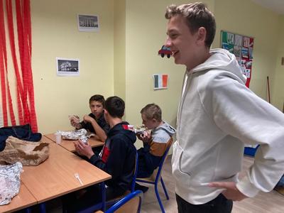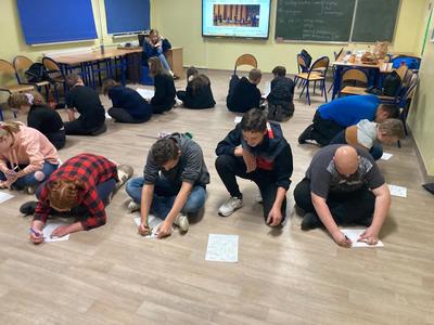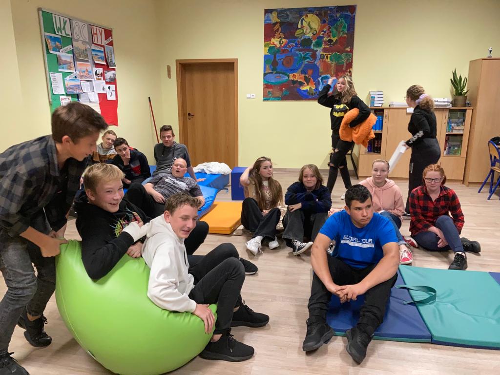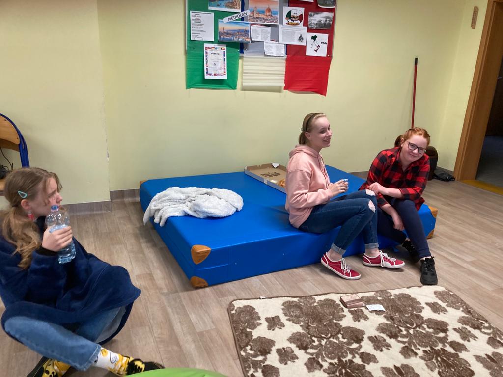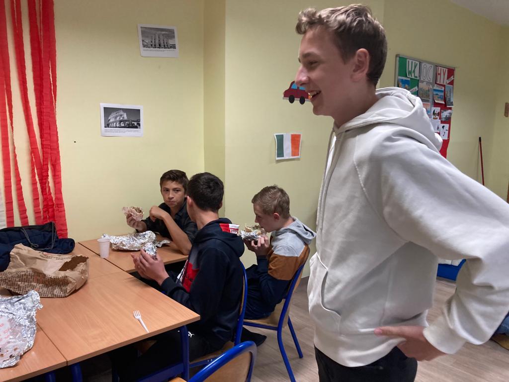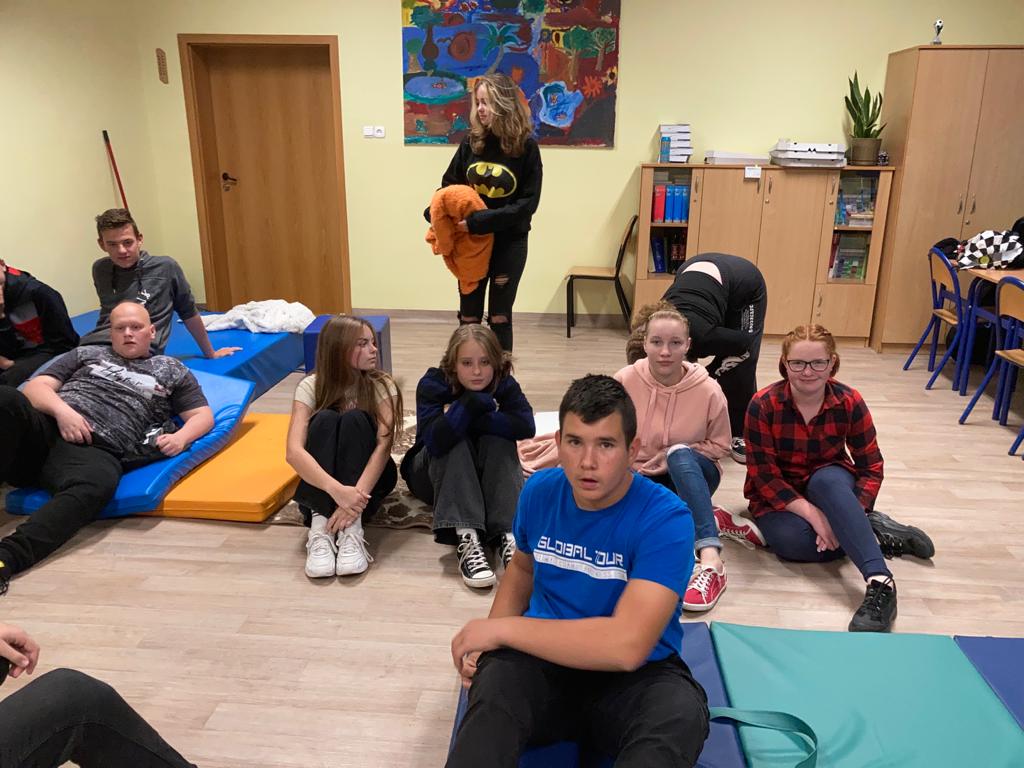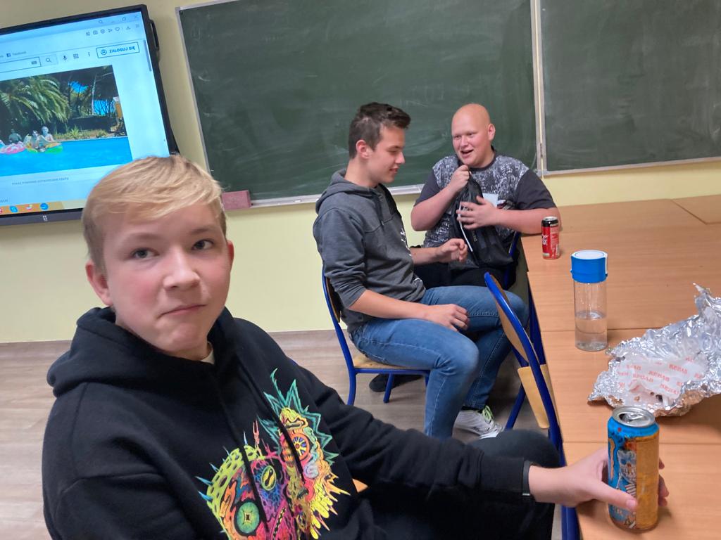 W piątek 1.10.2021r. uczniowie klasy 8a z własnej, nieprzymuszonej woli w godzinach wieczornych przyszli do szkoły. Głównym powodem było zobaczenie filmu z dreszczykiem. Zanim zaczął się seans zjedliśmy niezdrową pizzę i kebab – pycha!. Ponieważ potrzeby towarzyskie wygrały, klasa szybko zorganizowała sobie zabawę w chowanego na terenie szkoły, uczyła się gry towarzyskiej a na koniec każdy uczeń napisał coś wyjątkowego wszystkim uczestnikom spotkania.