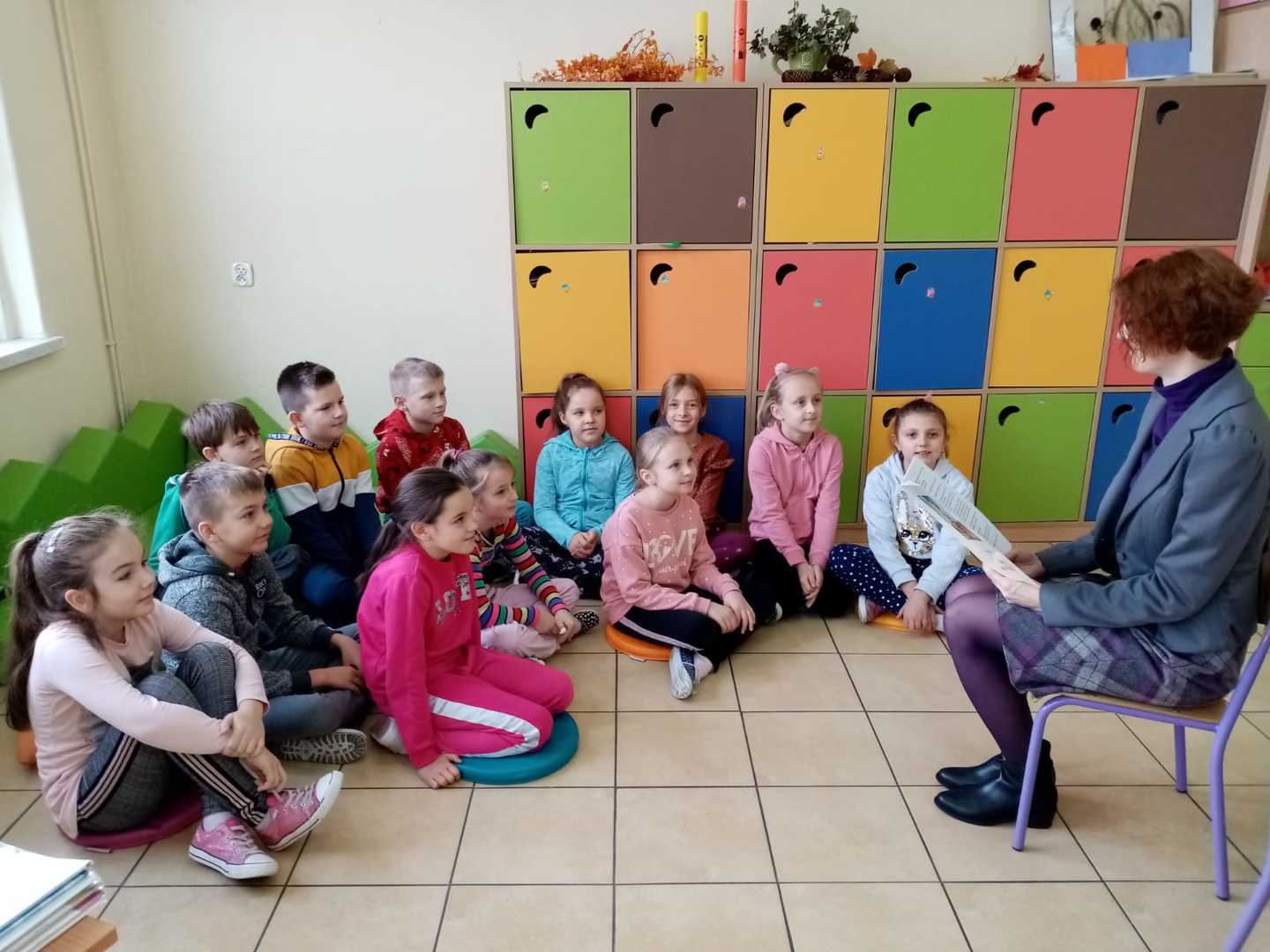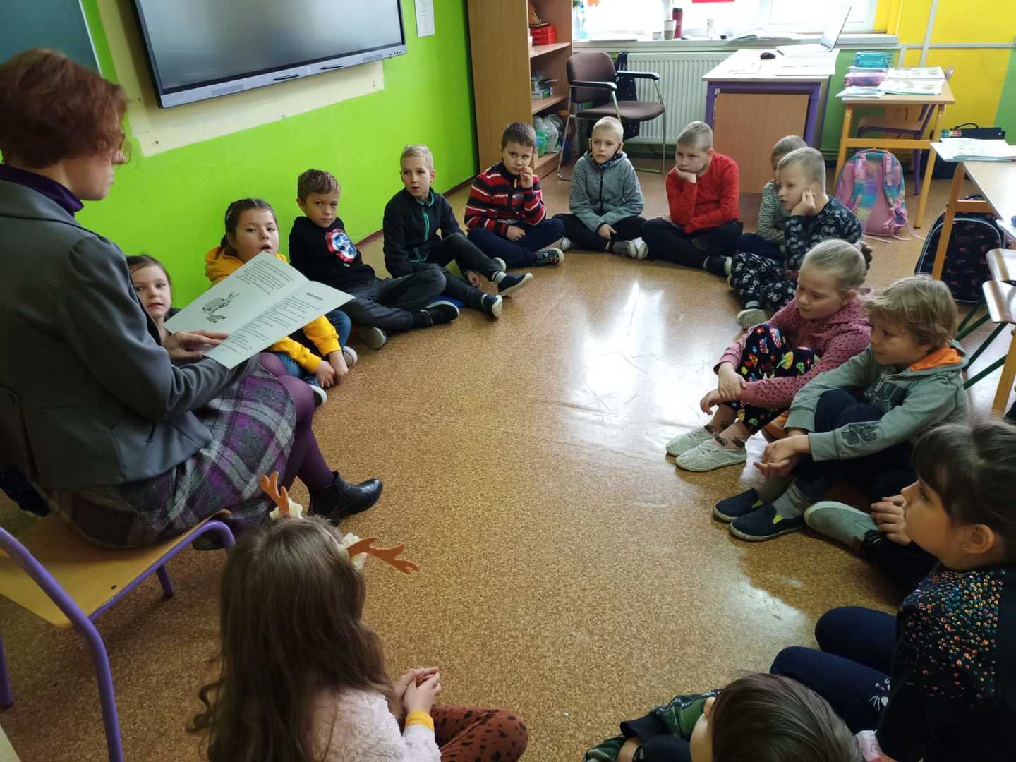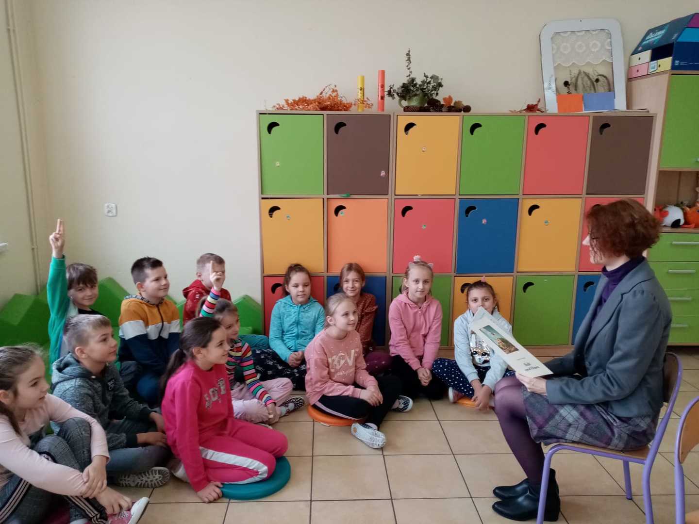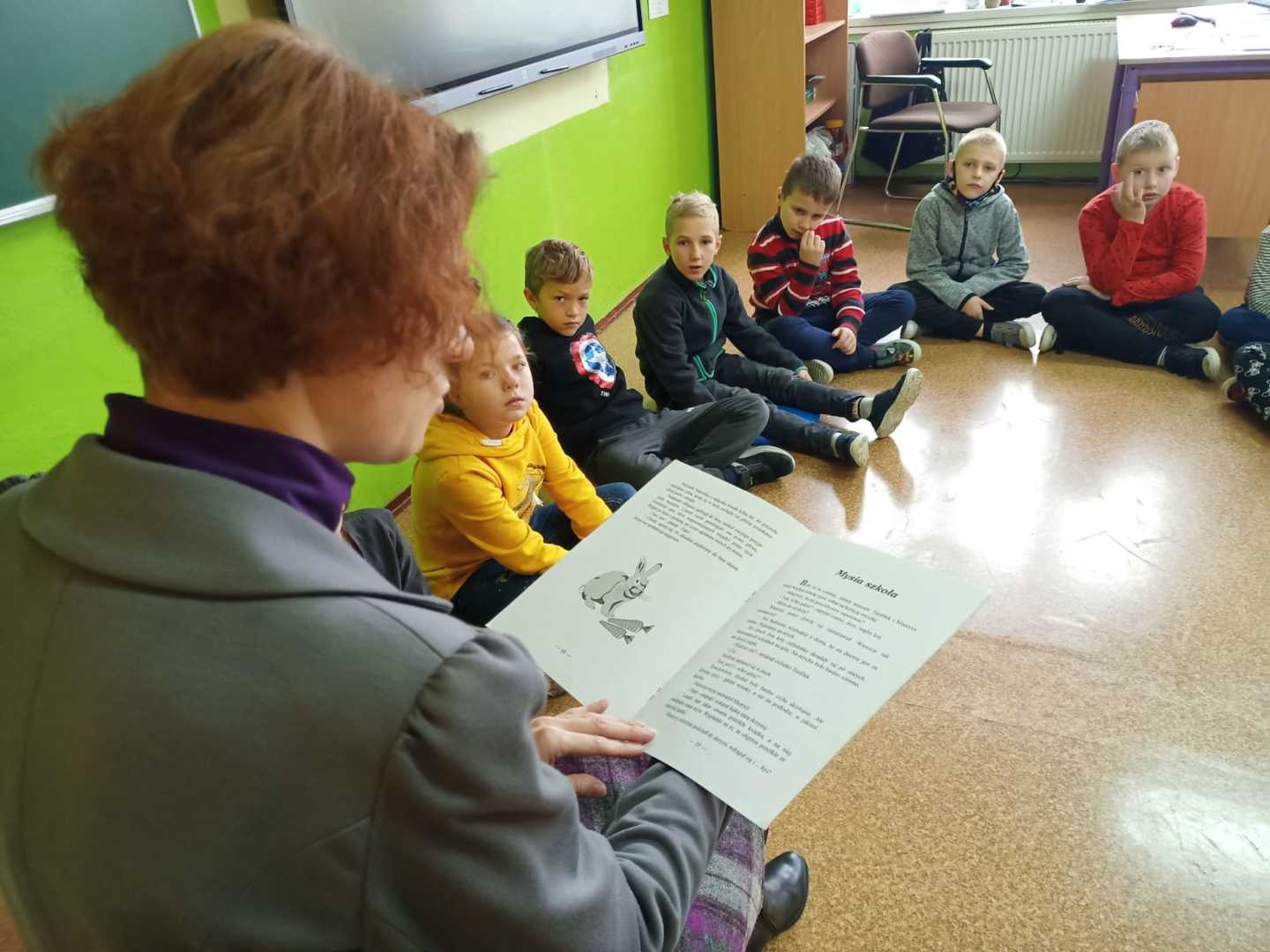 W dniu 16.11.2021 r. uczniowie klas I - III wzięli udział w kolejnych zajęciach czytelniczych, w ramach projektu "Przeczytam i zaczytam się". Usłyszeli fragmenty utworów: Mysia szkoła i Łańcuszek Wiewiórki z książki Grzegorza Brodackiego Bajki spod Olesna.