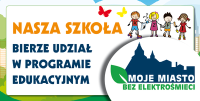 Nasza szkoła otrzymała pozytywną decyzję na przystąpienie do programu "Moje Miasto Bez Elektrośmieci". W ramach realizowanego programu prowadzone są aktywne zbiórki elektrośmieci, a wszystkie zebrane elektrośmieci są bezpłatnie odbierane przez ElektroEko i przekazywane do przetworzenia. Masa zebranych elektrośmieci przeliczana jest na punkty, które z kolei wymieniane są przez placówki oświatowe na pomoce dydaktyczne.