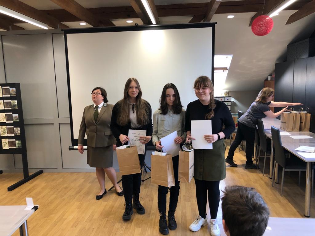 Uczennice naszej szkoły - Nadina Klein, Natalia Kontny i Roksana Francik zajęły II miejsce w wojewódzkim Konkursie Poznajemy Parki Krajobrazowe Polski. Aby zakwalifikować się do etapu wojewódzkiego drużyna z naszej szkoły pokonała konkurentów i zajęła pierwsze miejsca w etapie gminnym i rejonowym.