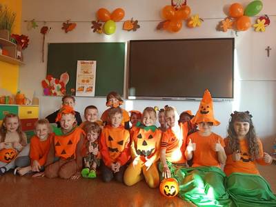 27 października uczniowie klasy II uczestniczyli w zajęciach podczas, których poznali bardzo zdrowe i urodziwe warzywo jakim jest dynia. Tego dnia przynieśliśmy do szkoły dynie i w miarę możliwości ubraliśmy się na kolor pomarańczowy. „Święto Dyni” pozwoliło nam poznać wielką różnorodność dyń i wzbogacił naszą wiedzę na ich temat. Wzięliśmy udział w licznych zabawach z udziałem dyni: dyniowe kręgle, slalom dyniowy, dyniowe zawody, skoki przez dynię. Poza dyniowymi zabawami każdy uczeń klasy wykonał papierową dynię a na pamiątkę naszego wyjątkowego klasowego święta uczniowie otrzymali dyplom. Dzięki uprzejmości rodziców, mieliśmy okazję spróbować dyniowe smakołyki, czyli pyszne dyniowe babeczki, ciasta, mus dyniowy za co serdecznie dziękujemy . Ten dzień był pełen wrażeń i radości.