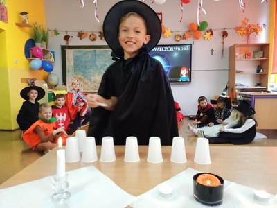 W klasach młodszych królowały wielobarwne stroje i wspaniałe przebrania. Uczniowie klas 1-3 przenieśli się w zaczarowany świat magii i wróżb. Andrzejkowe spotkanie rozpoczęło się zapoznaniem dzieci z tradycjami andrzejkowymi, po czym wróżbom i przepowiedniom nie było końca. Każde dziecko miało możliwość poznania swojej wróżby na przyszłość, oczywiście z „przymrużeniem oka”. Nie zabrakło rzucania monety do studni marzeń, szukania atrybutu przyszłego zawodu w „torbie bez dna”, gier słownych z magicznego słoja, a także wielu innych zabaw i słodkości. Wspólna zabawa dostarczyła dzieciom wielu niezwykłych przeżyć oraz emocji i z pewnością na długo pozostanie w ich pamięci.