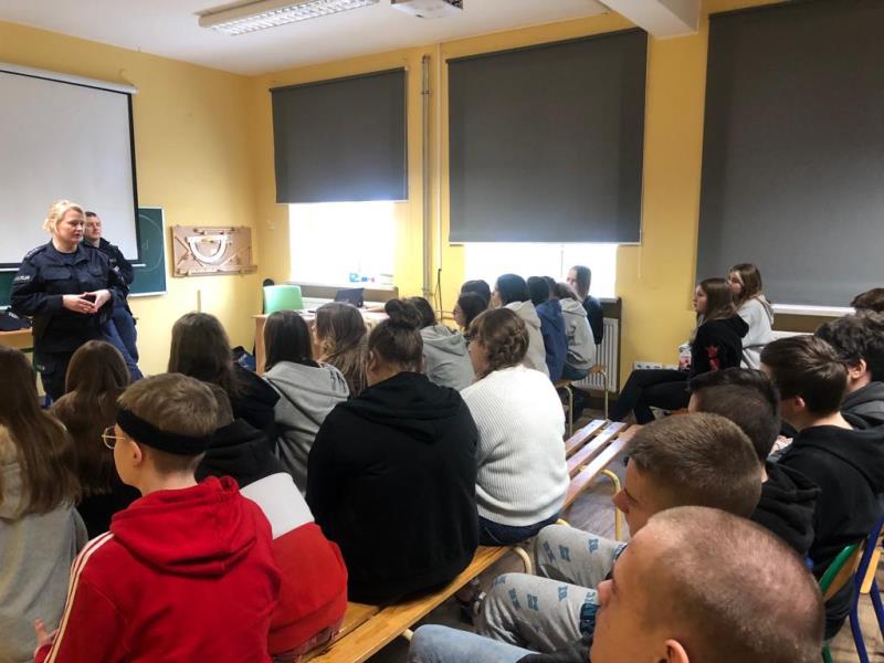 27.02 uczniowie klas 7-8 uczestniczyli w prelekcji przeprowadzonej przez asp.sztab. Iwonę Ochman, funkcjonariuszkę Komendy Powiatowej Policji w Lublińcu. Spotkanie miało na celu podniesienie świadomości uczniów dotyczącej odpowiedzialności prawnej nieletnich. Policjantka ostrzegała, iż nieprzestrzeganie prawa może prowadzić do poważnych konsekwencji, np. skierowaniem wniosku do sądu rodzinnego, nadzoru kuratora. Prelegentka poruszała między innymi tematy związane z cyberprzemocą oraz przemocą rówieśniczą. Przypomniano uczniom, gdzie szukać pomocy w sytuacji zagrożenia. To ciekawe spotkanie pomogło zrozumieć naszym uczniom, że bezpieczeństwo własne oraz rówieśników zależy w dużym stopniu od ich zachowań i wyborów w szkole, a także poza nią.