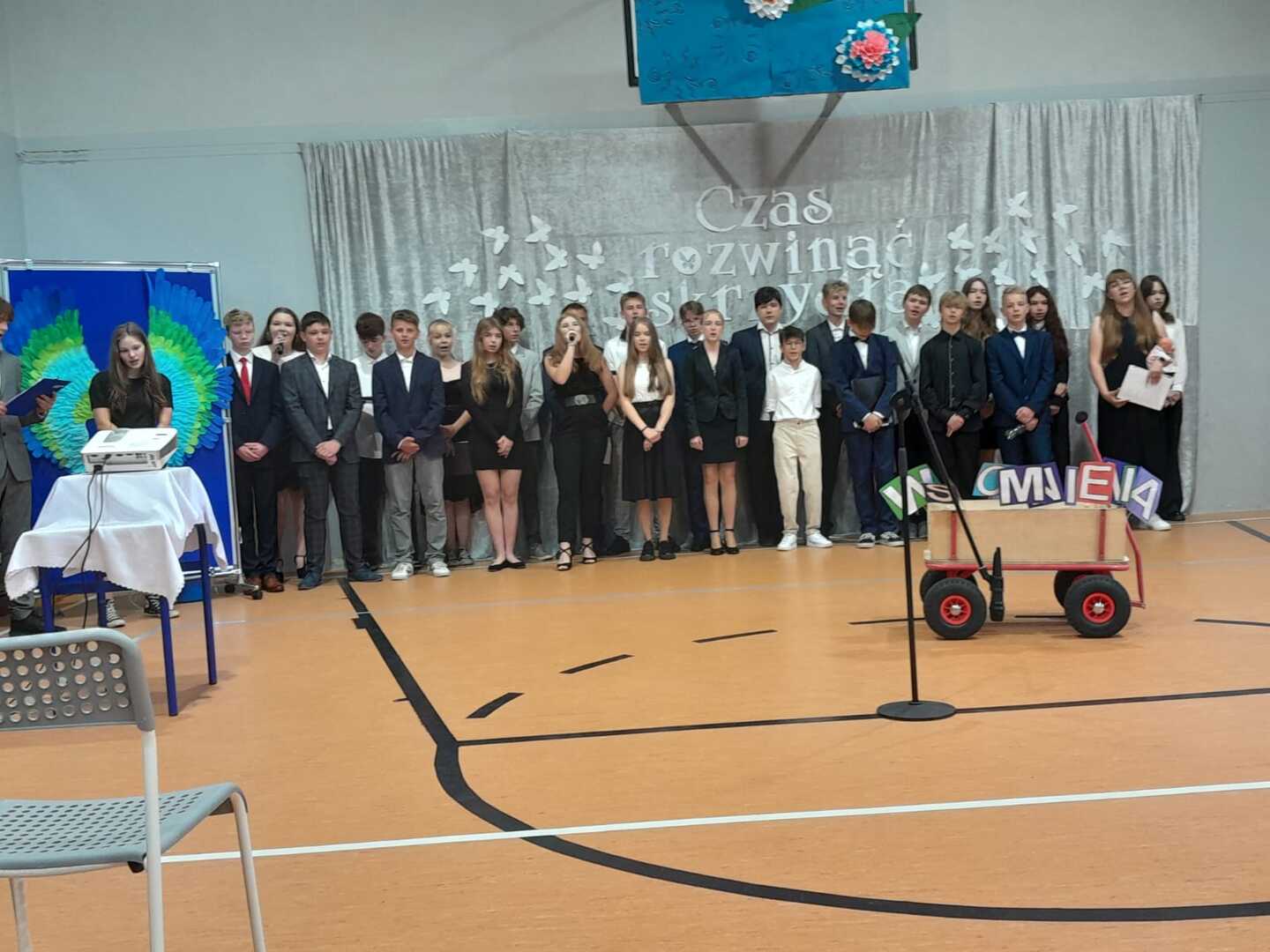 W piątek 23 czerwca odbyło się uroczyste zakończenie roku szkolnego. Tradycyjnie już nasi ósmoklasiści przygotowali program artystyczny, podczas którego podziękowali za 8 lat nauki w szkole. Wspomnienia wspólnych chwil, nauczycieli, koleżanek i kolegów, wycieczek, niezapomnianych przygód, towarzyszyły nam przez te kilka godzin. Teraz czas na nich… Czas rozwinąć skrzydła i realizować swoje pasje i marzenia w nowych szkołach.