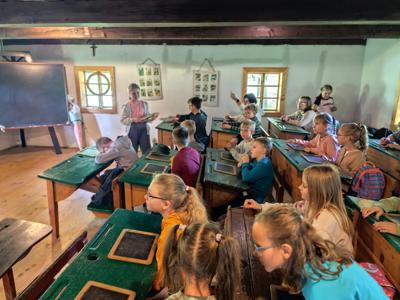 Wycieczka okazała się niezwykle udana i pełna wartościowych doświadczeń. Uczniowie nie tylko wzbogacili swoją wiedzę historyczną, ale również mieli okazję osobiście doświadczyć, jak wyglądała nauka i życie ich pradziadków. To była prawdziwa lekcja historii – żywa, ciekawa i inspirująca.