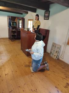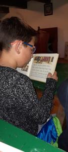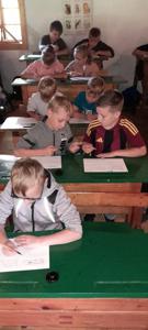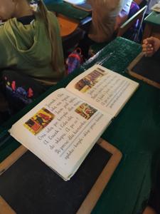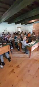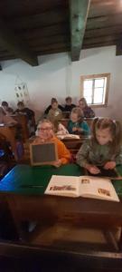 Uczniowie poznali również obowiązki, jakie spoczywały na dzieciach w domu i w obejściu gospodarstwa. Z dużym zainteresowaniem wysłuchali opowieści o roli dyżurnych w dawnej klasie – do ich zadań należało m.in. przynoszenie drewna i rozpalanie ognia w piecu.