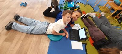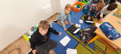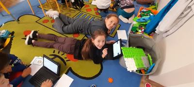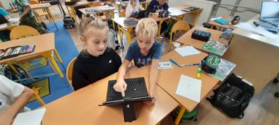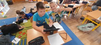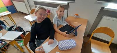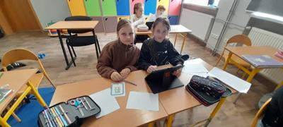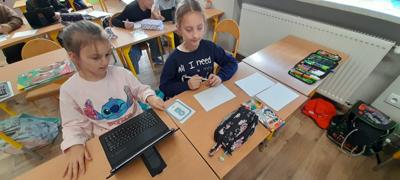 Młodsi uczniowie, korzystając z tabletów oraz internetowych słowników, wyszukiwali wskazane informacje w różnych językach. Dzięki nowoczesnym technologiom szybko i skutecznie odnajdywali potrzebne słowa i wyrażenia, co pozwoliło im stworzyć własny, krótki słownik zawierający przydatne zwroty w kilku językach europejskich. Była to nie tylko świetna okazja do nauki, ale także doskonałe ćwiczenie rozwijające umiejętność samodzielnego poszukiwania informacji.
