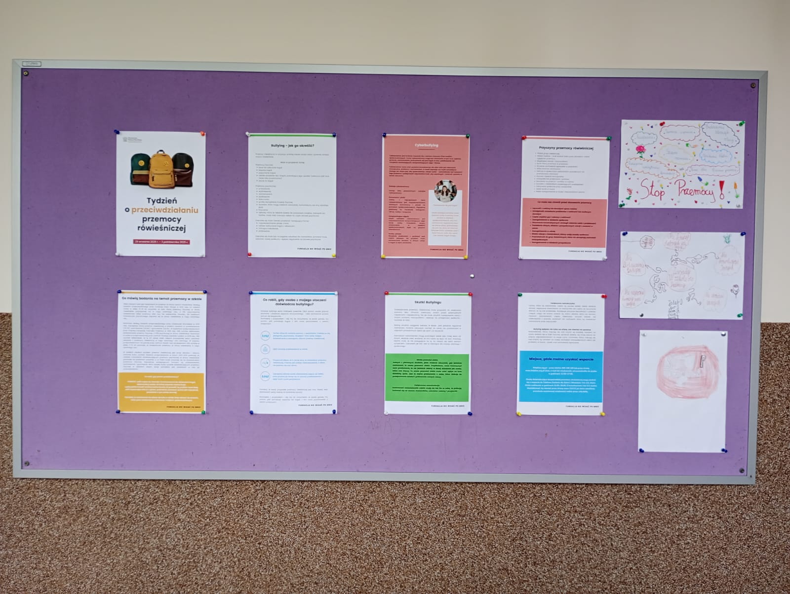 Nasza szkoła od 29 września do 3 października wzięła udział w Tygodniu Przeciwdziałania Przemocy Rówieśniczej realizowanym w ramach ogólnopolskiej inicjatywy Ministerstwa Edukacji Narodowej. Uczniowie mieli okazję brać udział w zajęciach prowadzonych przez szkolnych specjalistów, podczas których poszerzyli swoją wiedzę dotyczącą rodzajów przemocy oraz sposobów reagowania wobec sytuacji przemocowych. Dodatkowo uczniowie przygotowali plakaty promujące życzliwość, szacunek oraz bezpieczeństwo w relacjach szkolnych. Na gazetkach szkolnych pojawiły się istotne informacje dotyczące szerokopojętych tematów z obszarów przeciwdziałania przemocy. Podjęte działania miały na celu podniesienie świadomości uczniów na temat przemocy rówieśniczej, kształtowaniu postaw empatii i odpowiedzialności oraz promowaniu wartości życzliwości, szacunku i tolerancji. Inicjatywa spotkała się z dużym zaangażowanie uczniów.