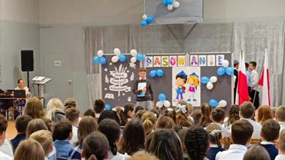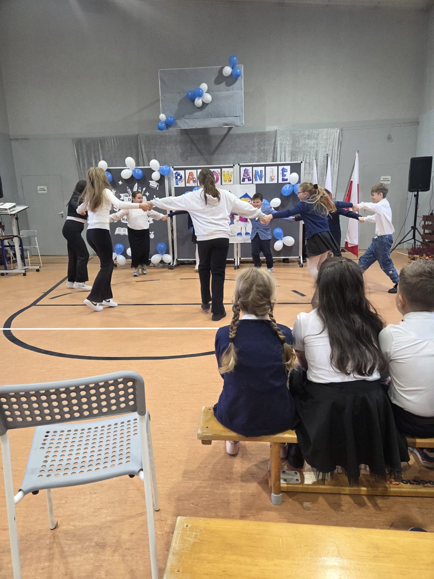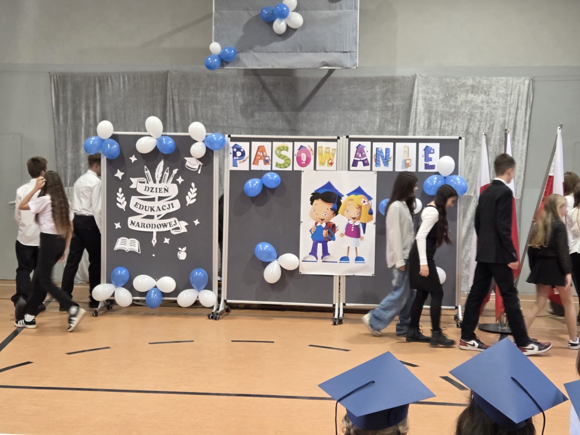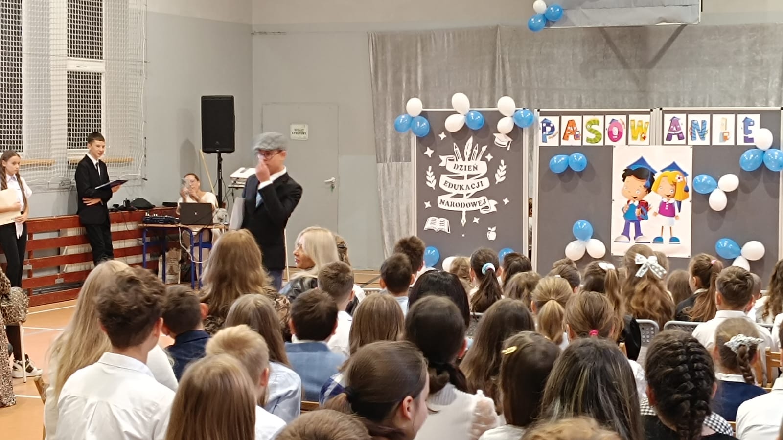 14 października był szczególnym dniem w naszej społeczności szkolnej. W tym dniu świętowaliśmy Dzień Edukacji Narodowej, który upłynął w wyjątkowej atmosferze – z humorem, kreatywnością i ważnymi momentami. Uczniowie przygotowali krótką, pełną energii akademię. Jednym z głównych punktów programu była zabawa „Uczniowie kontra Nauczyciele”. Trzyosobowe drużyny zmierzyły się w konkurencji wzorowanej na „Kole Fortuny”, zgadując hasła i odpowiadając na pytania – śmiechu było co niemiara! Dodatkową atrakcją była prezentacja zdjęć nauczycieli wygenerowanych przez sztuczną inteligencję. Uczniowie próbowali rozpoznać, kto znajduje się na tych zabawnych portretach, co wywołało salwy śmiechu i świetną zabawę.