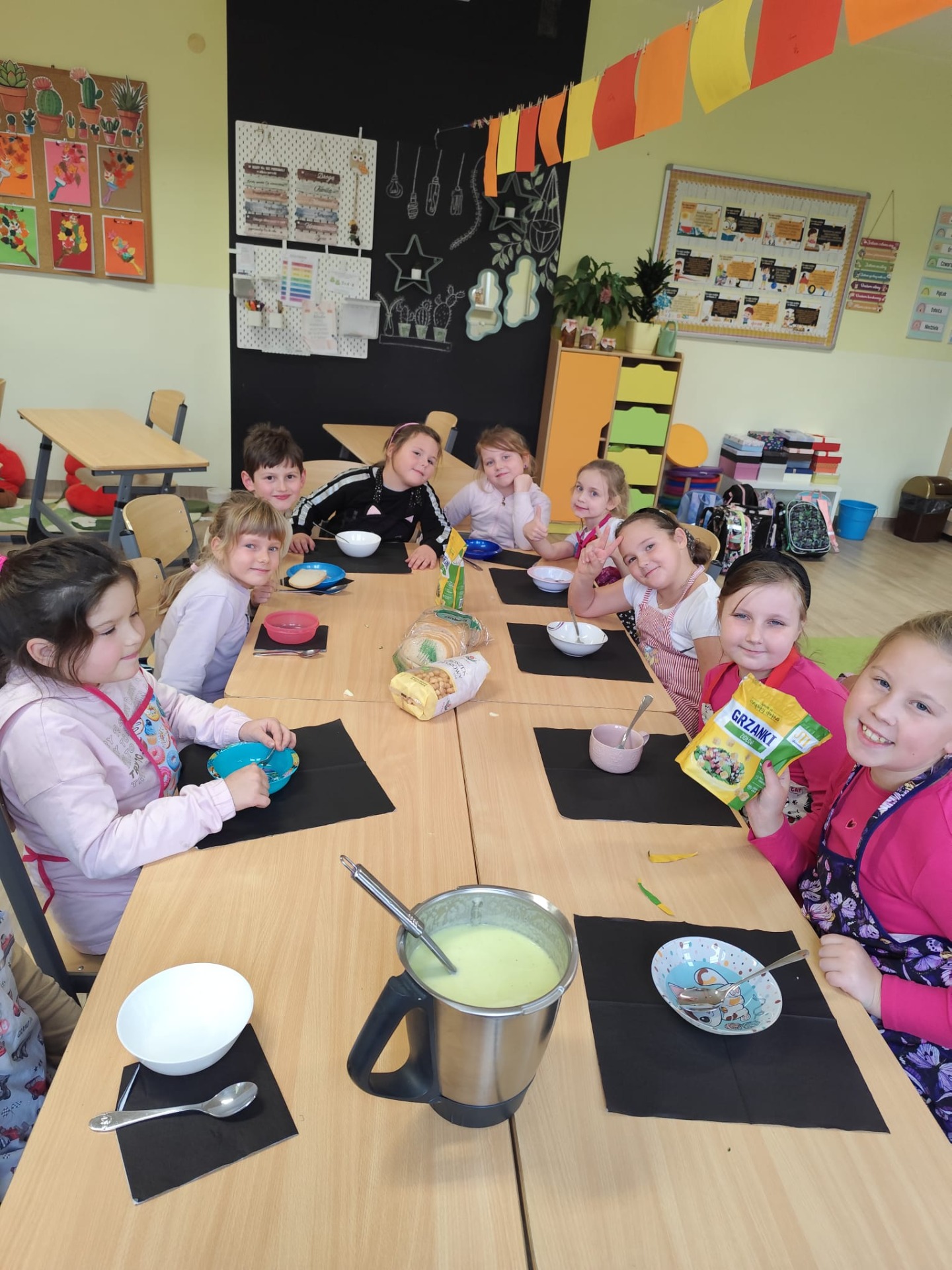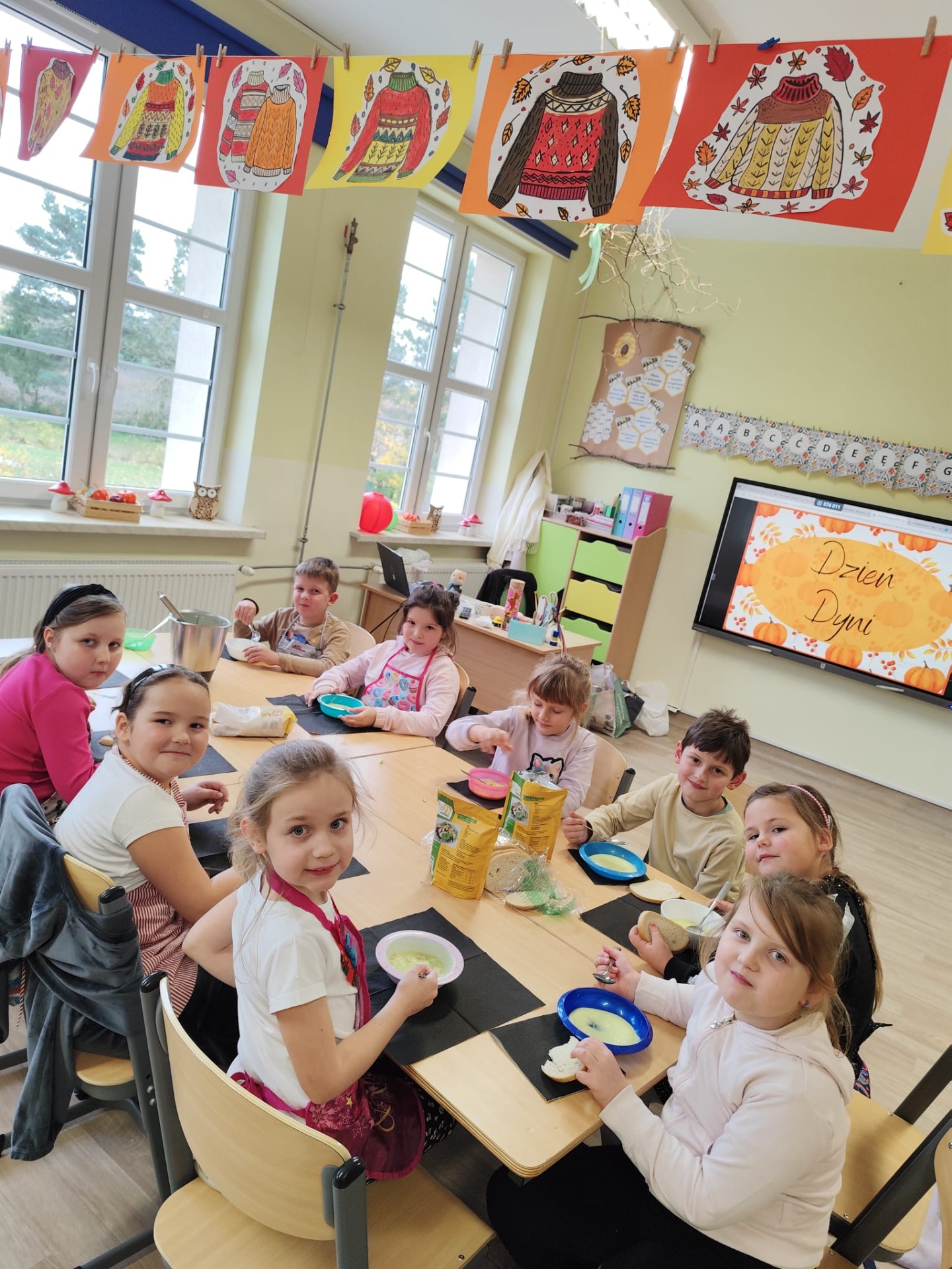Kolejne zajęcia upłynęły pod znakiem pomarańczowej królowej jesieni – dyni! Uczniowie wspólnie przygotowali zupę krem z cukinii i dyni, poznając przy tym tajniki zdrowego gotowania, zasad higieny i bezpieczeństwa. Samodzielne krojenie, mieszanie i doprawianie potrawy sprawiło wszystkim ogromną frajdę – a zapach zupy roznosił się po całej szkole!
