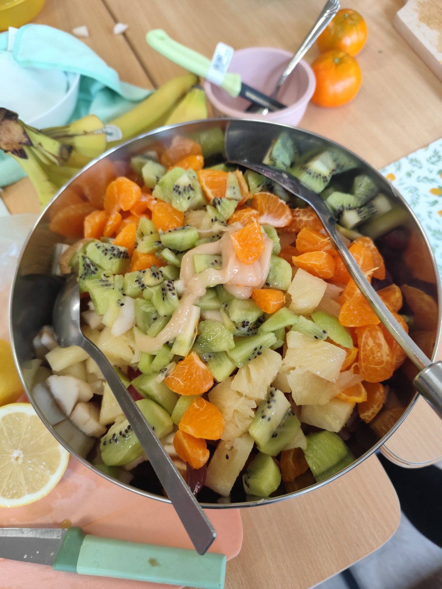 W związku z tym, że 17 października obchodziliśmy "Światowy Dzień Owoców i Warzyw" dowiedzieliśmy się kilka dodatkowych ciekawostek i ważnych informacji o ich bogactwie, ale także przygotowaliśmy SAŁATKĘ 🥗 OWOCOWĄ 🍏🍎🍐🍊🍋🍌🍉🍇🍓🫐🍒🍑🥭🍍🥝🍋🟩