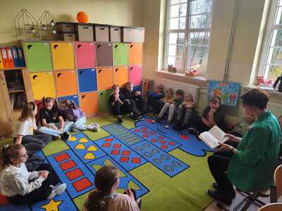 W ramach Projektu czytelniczego „Odpoczywam z książką” uczniowie klas I-III w październiku wysłuchali fragmentów następujących książek: