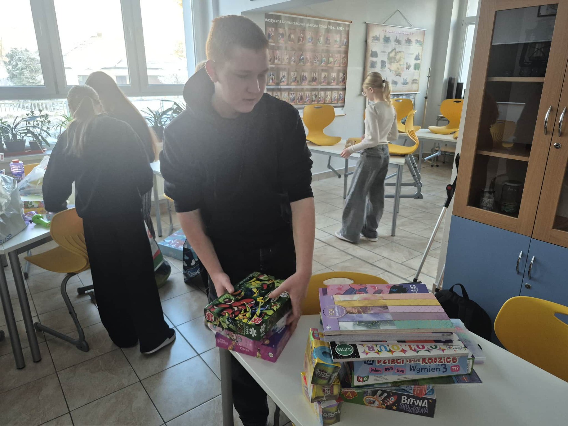 W działanie zaangażowali się nie tylko uczniowie naszej szkoły podstawowej, ale i dzieci przedszkolne, nauczyciele, pracownicy szkoły… słowem CAŁA SPOŁECZNOŚĆ SZKOLNA! Dzięki temu niezwykłemu zaangażowaniu udało nam się zebrać wiele przedmiotów, które sprawią radość dzieciom, w tym m.in: kolorowanki, książki, pluszaki, zabawki, bransoletki, przybory plastyczne i wiele wiele innych. Z całego serca dziękujemy za tak duży odzew i aktywność w działanie Szkolnego Koła Wolontariatu we współpracy z Gminnym Ośrodkiem Pomocy Społecznej w Ciasnej❤️