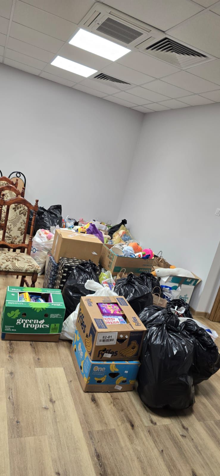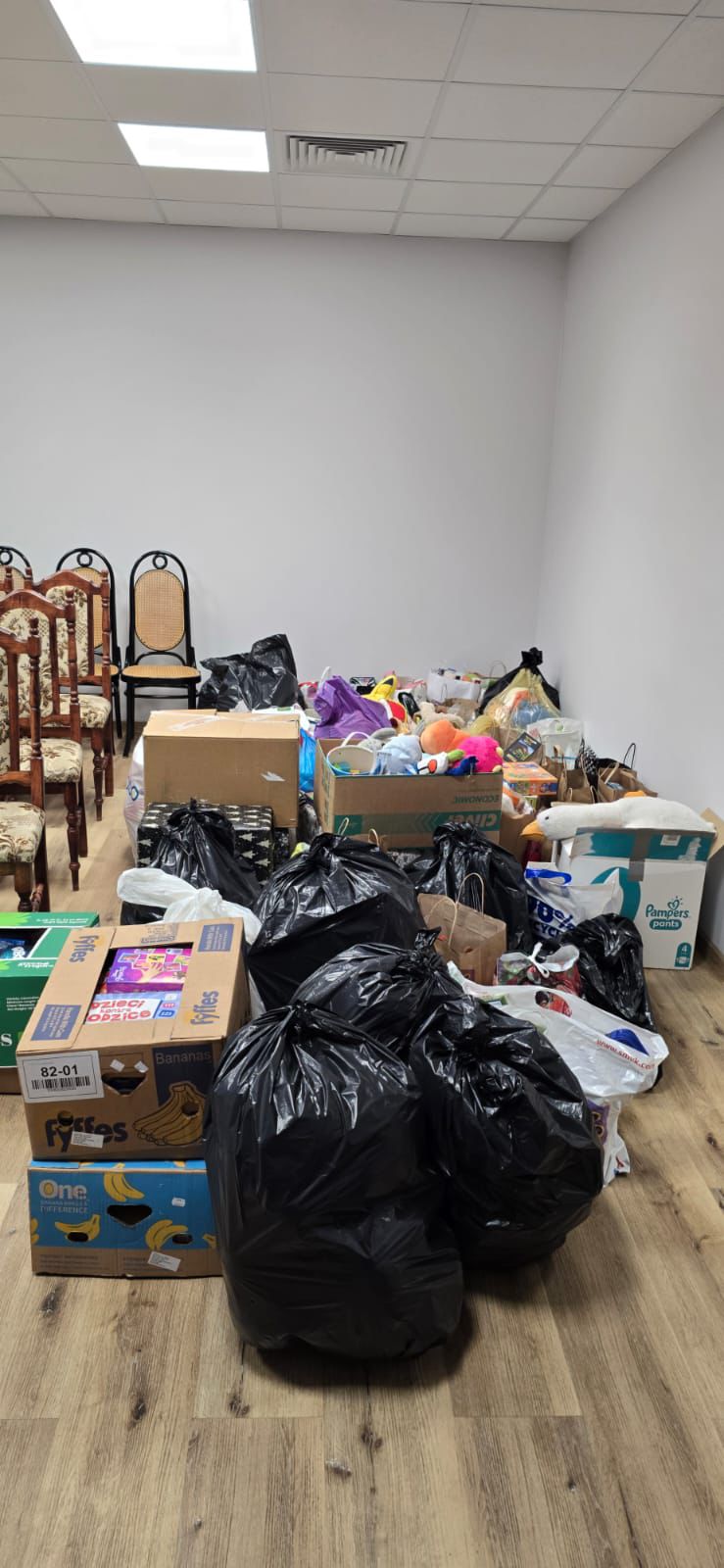 Oprócz naszej szkoły zbiórkę zorganizowały również ZSP w Ciasnej oraz SP w Zborowskiem. Chęć pomocy, nie tylko naszej szkoły, może opisać jedynie zdjęcie ilości zebranych przedmiotów.