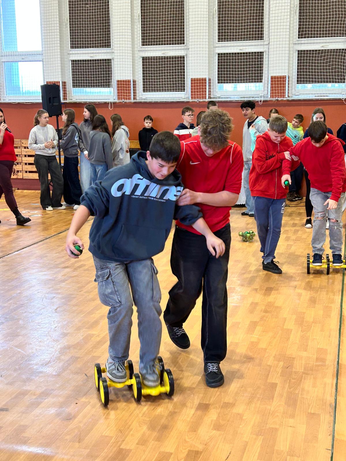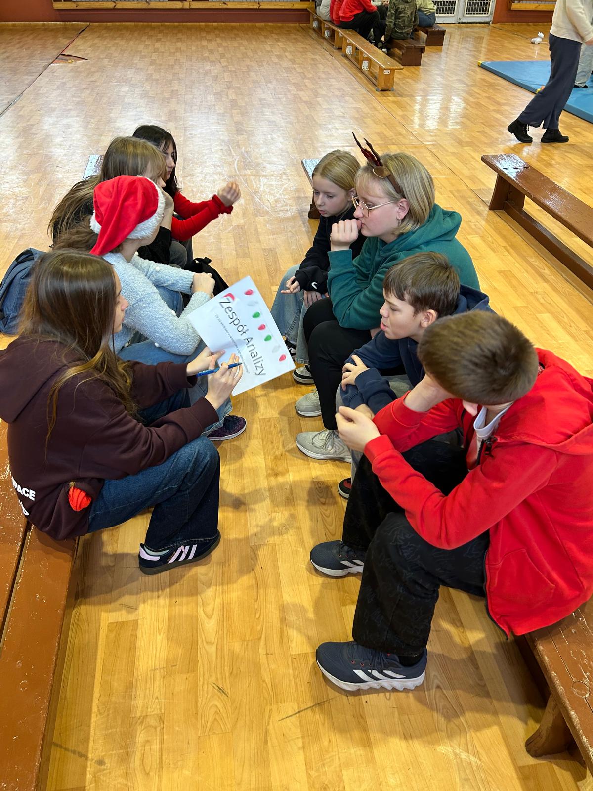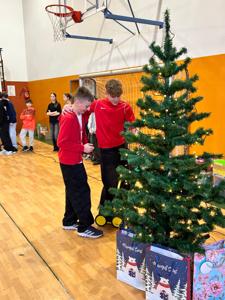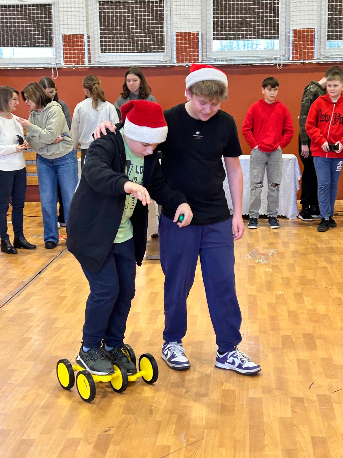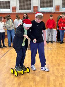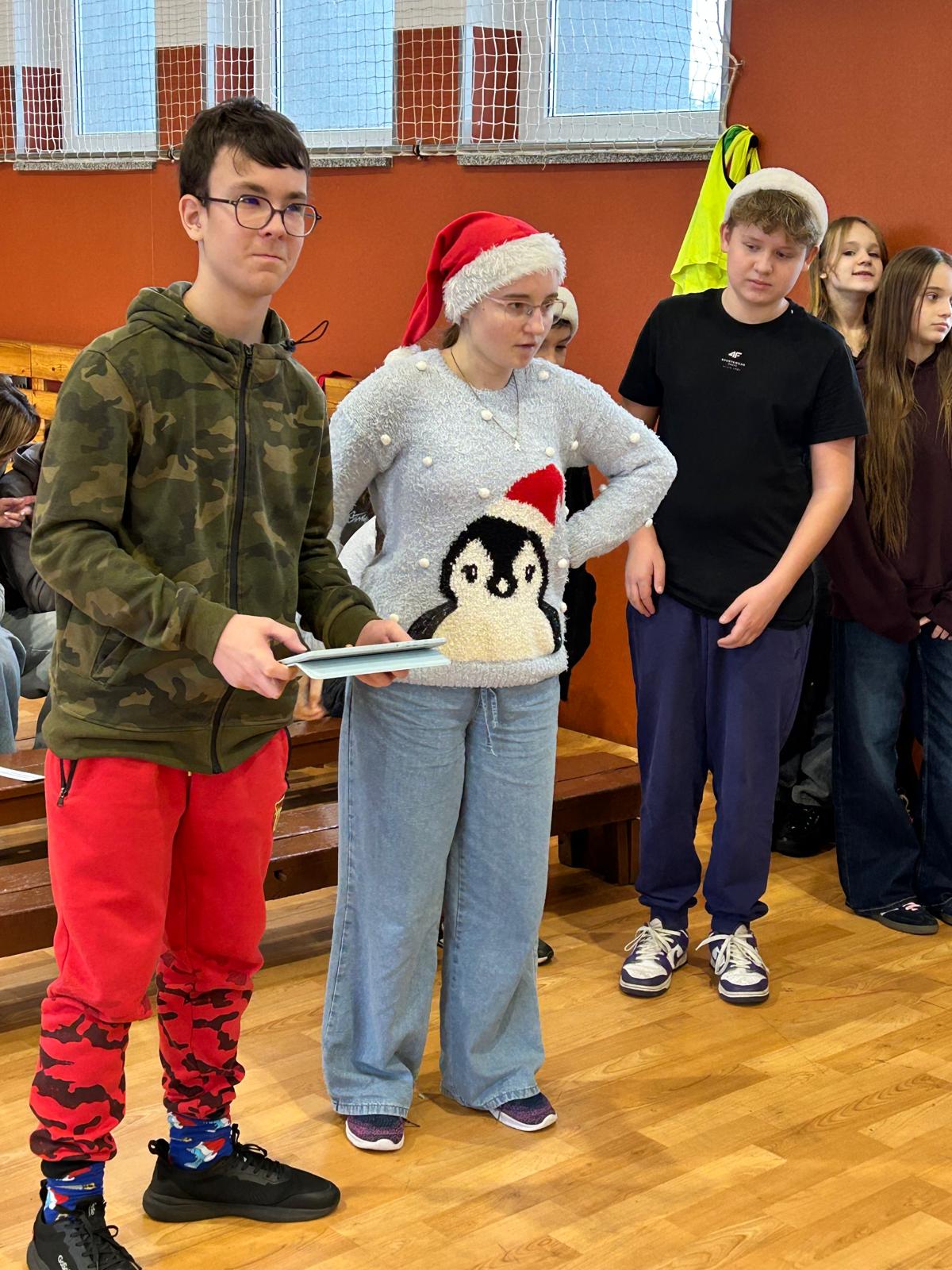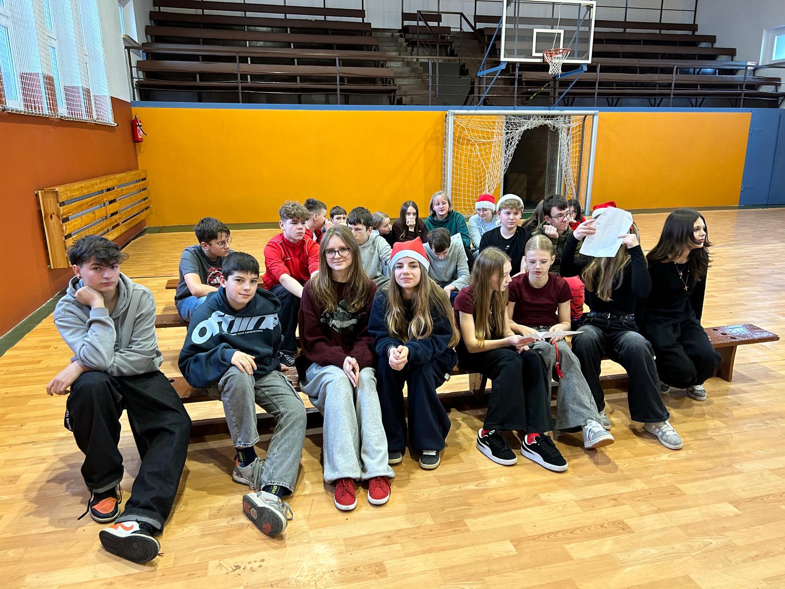 Dnia 11 grudnia 2025 r. uczniowie klasy 7 wzięli udział w Mikołajkowym Profilaktycznym Turnieju Robotycznym, który odbył się w hali sportowej w Ciasnej. W wydarzeniu uczestniczyły również klasy siódme z terenu całej gminy, co sprzyjało integracji i nawiązywaniu nowych znajomości. Podczas turnieju uczniowie rywalizowali i współpracowali w różnorodnych, świątecznie przygotowanych konkurencjach, m.in.: