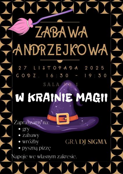 17 listopada 2025 Aktualności SZKOLNA ZABAWA ANDRZEJKOWA Serdecznie zapraszamy uczniów klas 4-8 na wspólną zabawę Andrzejkową " W KRAINIE MAGII". Przebrania mile widziane. Szczegóły w plakacie. Czytaj więcej